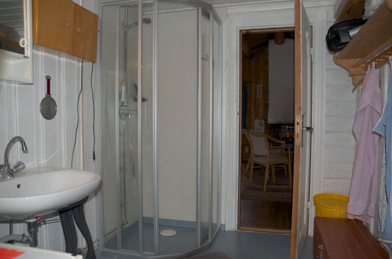 Die Hütte steht in einem Abstand von ca. 30 m vom Uthus entfernt. Nah genug, um mit Freunden Urlaub zu machen und weit genug entfernt, um Ruhe zu haben.