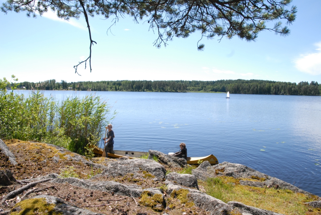 Am nahe gelegenen See (5 min Fußweg) befindet sich ein Bootssteg mit zwei Ruderbooten und einem Kanu, die gemeinsam mit den Gästen der Uthus-Hütte genutzt werden können. Der See lädt zum Angeln und Baden ein.